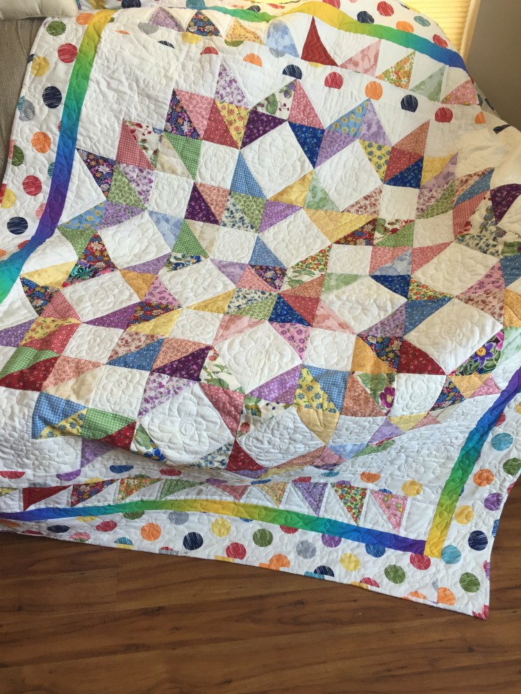 Many years later, I started taking quilt classes at the local quilt stores with some friends. For many years I pieced quilts and would send them out to be long arm quilted. Several years ago, I learned how to long arm quilt and now I make my own quilts from start to finish. I love the whole process of creating quilts, from sewing the top together, choosing the backing, custom quilting and ending with a beautiful binding. Each quilt is created with lots of care and love. Look through the pictures and find the one or two that you would love to have!